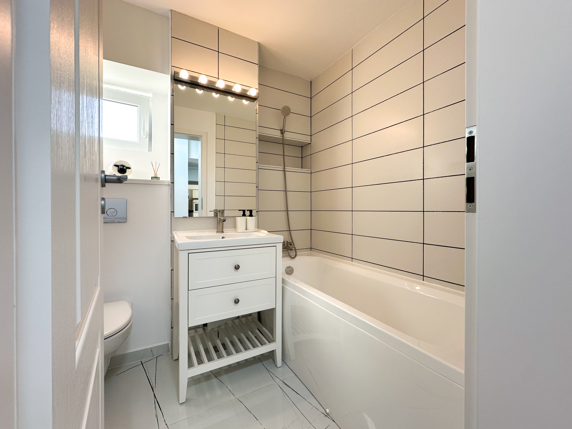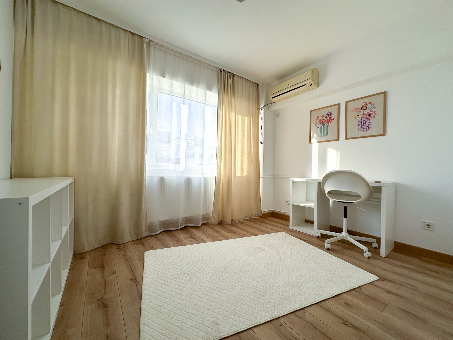Peste 90 de metri pătrați totali, renovați complet de la instalații până la ultimul finisaj. Nu „dat cu vopsea și pus parchet" — refăcut de la zero. Boiler electric propriu, deci apă caldă indiferent de ce se întâmplă cu termoficarea în bloc, 4xAC pentru confort termic.