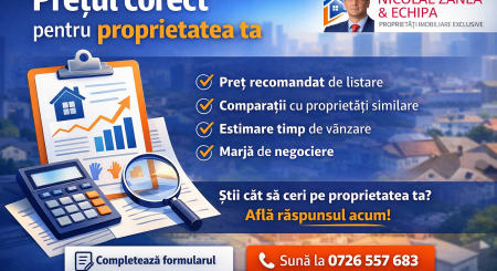 Află prețul proprietății tale în București & Ilfov: interval realist, preț pe m², comparabile, marjă de negociere și strategie de listare. Completează formularul sau sună la 0726 557 683