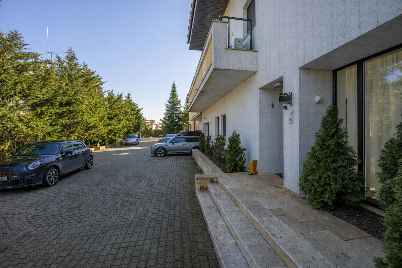 Situata intr-un complex rezidential elegant si intim, cu acces direct din soseaua principala si acces imediat la DN 1 si A 0. Vila contemporana, cu 5 dormitoare si bai en-suite, bucatarie mare, living superb cu scara interioara si suprafete vitrate mari, ideala pentru o familie ce isi doreste statut, spatii ample si prestigiu. Lot mare, amenajat peisagistic, piscina, foisor recent amenajat, sistem de irigatie, vedere la padure. Interior foarte spatios, spatii de depozitare, dressing-uri, garaj cu acces direct in casa, gym, panouri fotovoltaice de 25 kw, semineu.